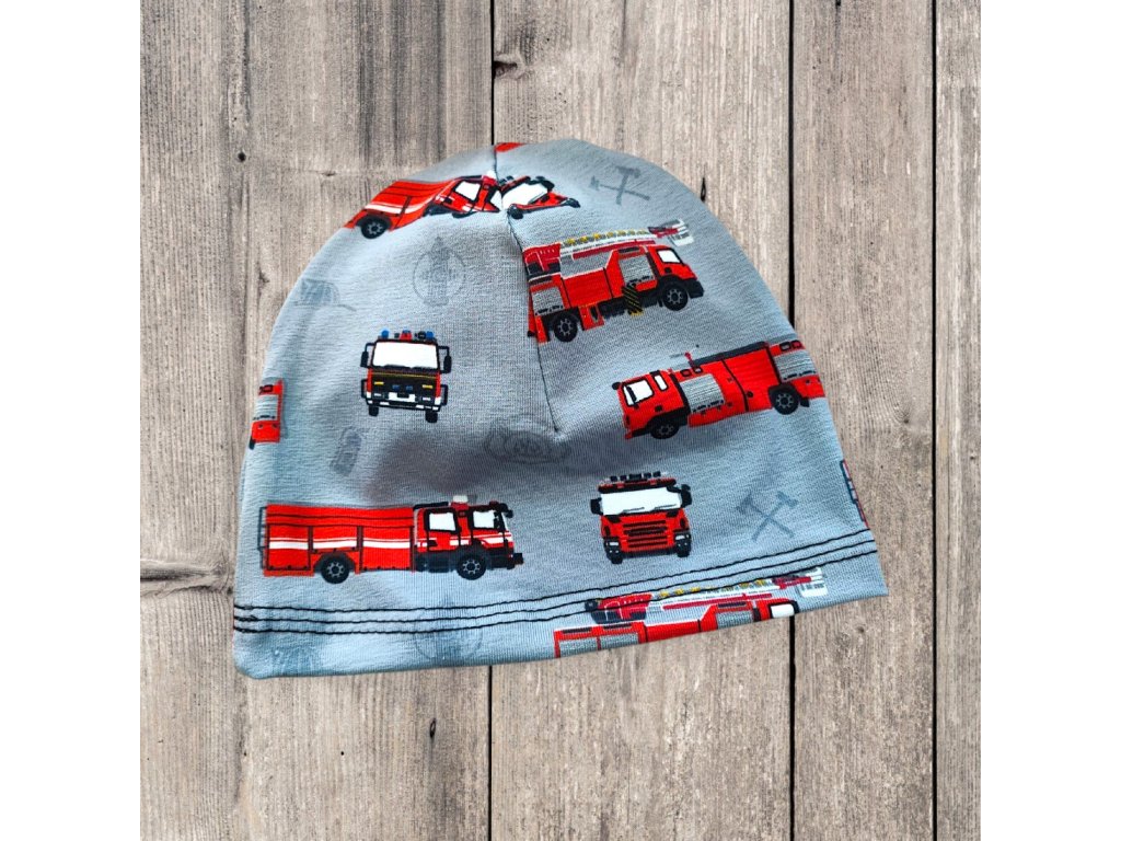 Ušito z potištěného úpletu, klasický střih, jednovrstvá čepice.