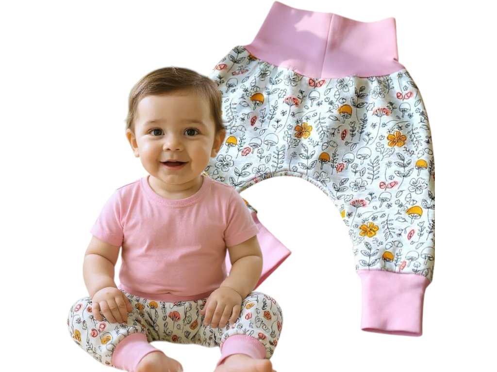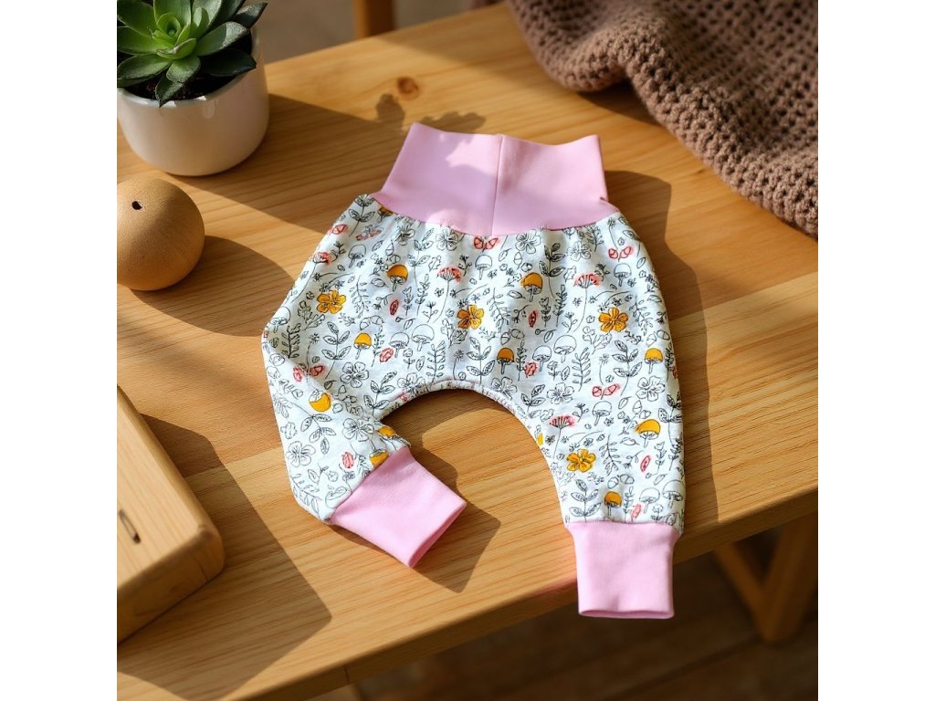 Chlupaté tepláky 56/68 květnatá louka růžová Holčičí tepláky