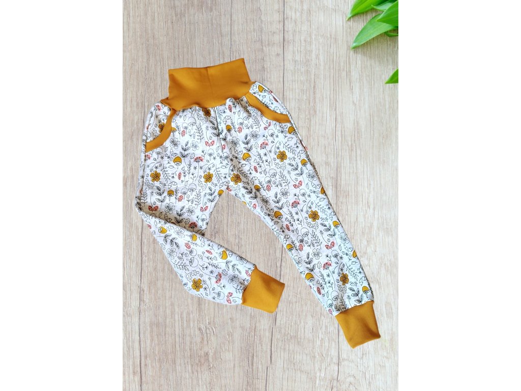Chlupaté tepláky 56/68 podzimní téma hořčice Holčičí tepláky