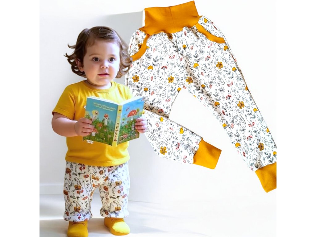 Chlupaté tepláky 86/82 podzimní louka hořčice Holčičí tepláky