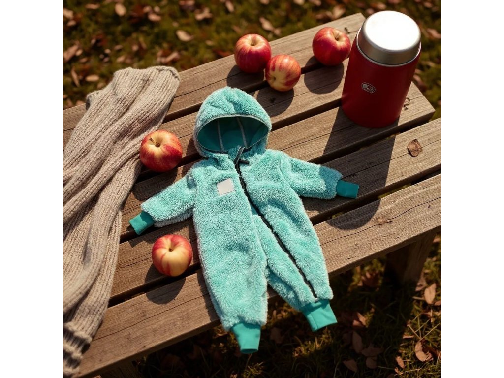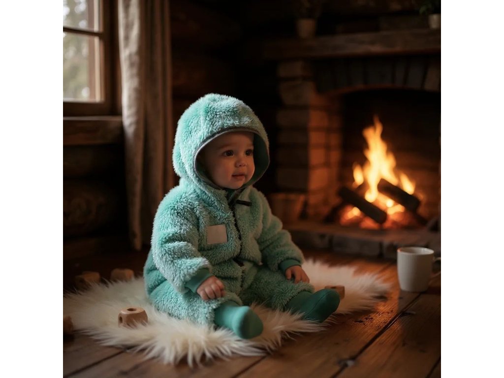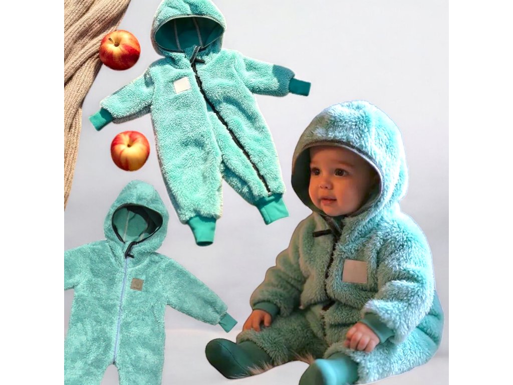 Chlupatý overal mintový s kapucí Dětský overal