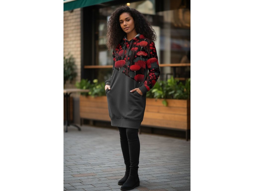 Mikina je ušitá z potištěné i jednobarevné teplakoviny z rubu jemná smyčka. S kapucí, dvě boční kapsy. Rukávy i spodní část zakončeny pružným nápletem.
