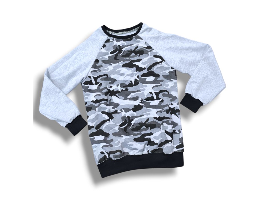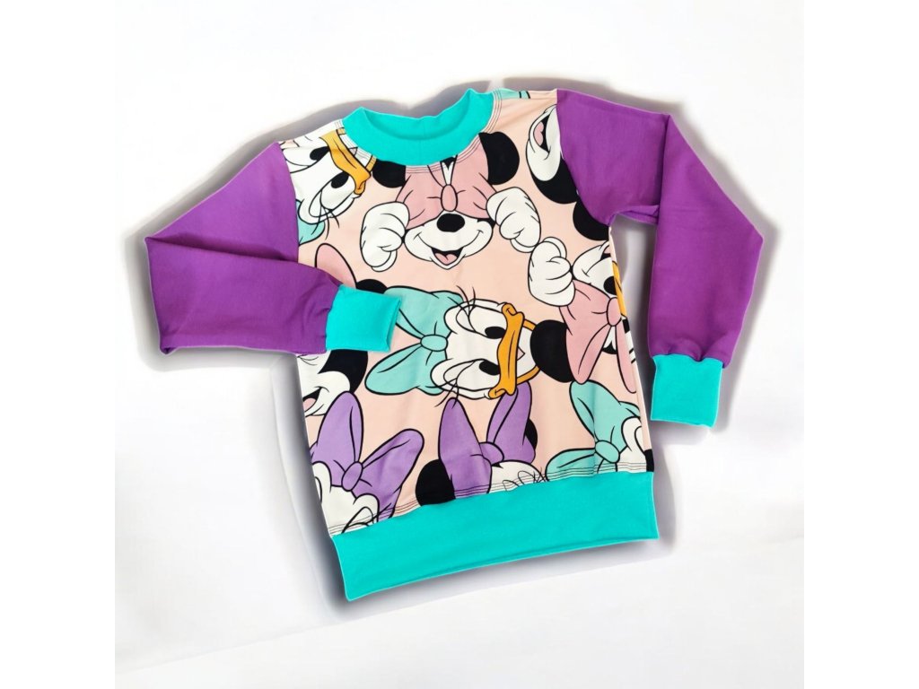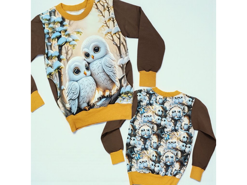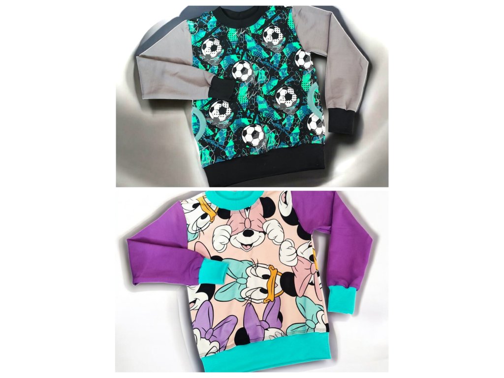 Mikiny jsou ušité z potištěné i jednobarevné teplakoviny z rubu jemná smyčka, čili slabá teplakovina. Mikina je přes hlavu, bez kapuce, bez kapes. Rukávy i spodní část zakončeny pružným nápletem, rostoucí.