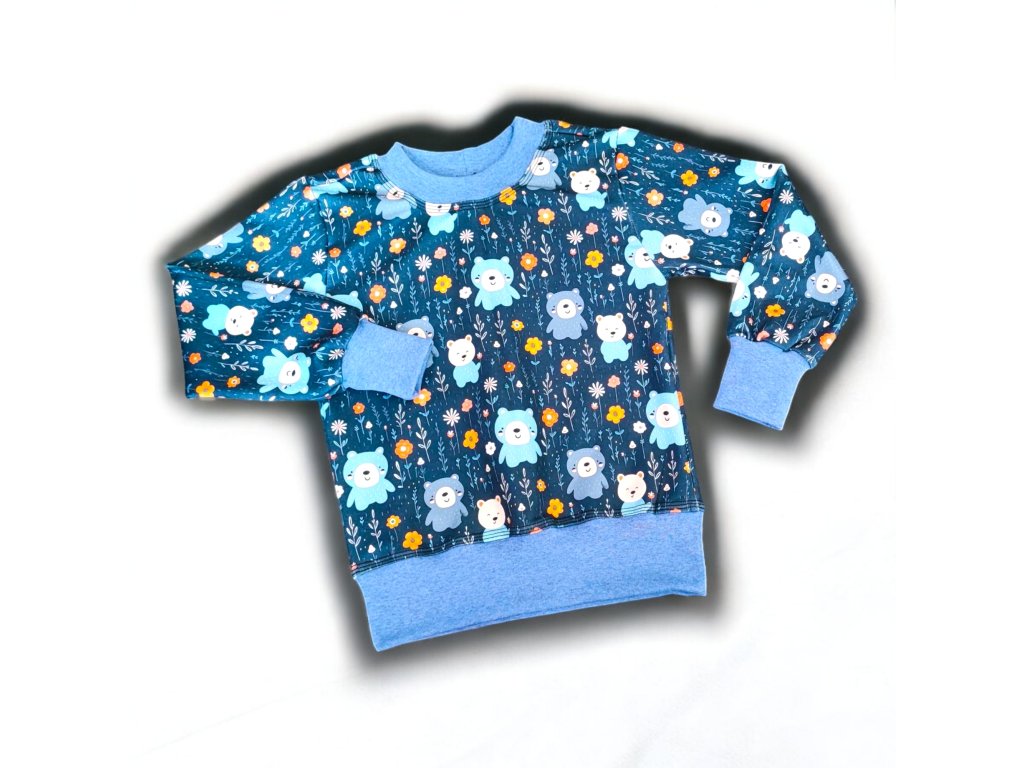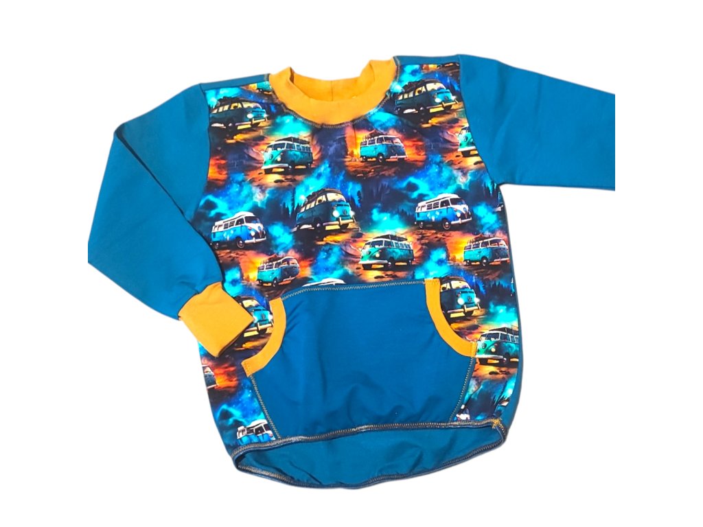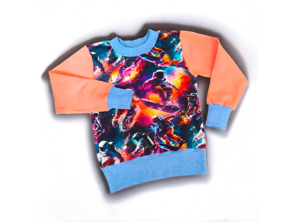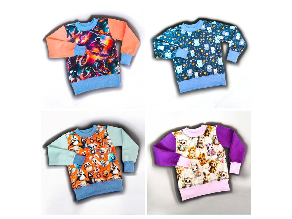 Mikiny jsou ušité z potištěné i jednobarevné teplakoviny z rubu jemná smyčka, čili slabá teplakovina. Mikina je přes hlavu, bez kapuce, bez kapes. Rukávy i spodní část zakončeny pružným nápletem, rostoucí.