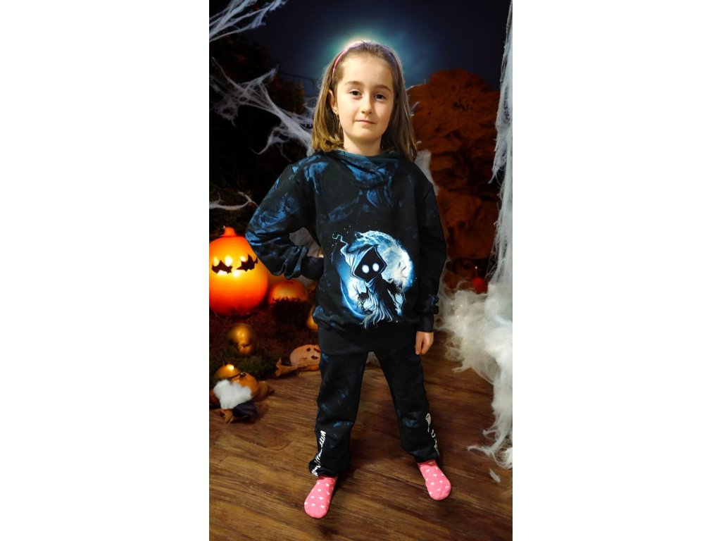Mikina je ušitá z potištěné i jednobarevné teplakoviny z rubu jemná smyčka čili slabá teplakovina. Mikina je přes hlavu s kapucí a bez kapes, rukávy i spodní část je zakončena pružným nápletem (rostoucí).