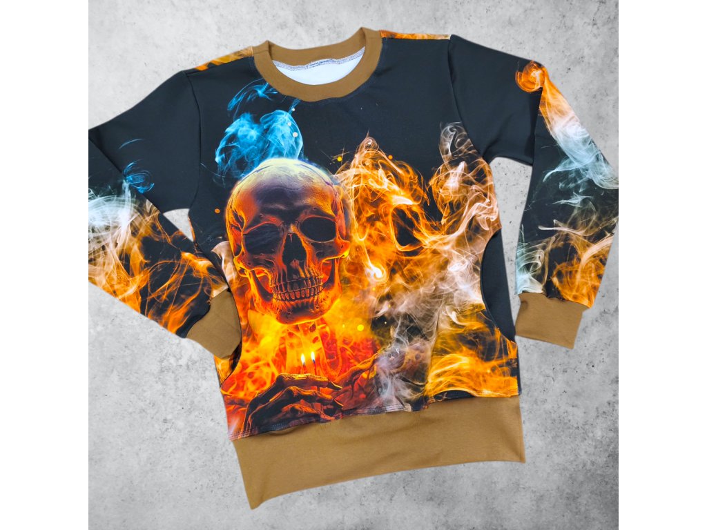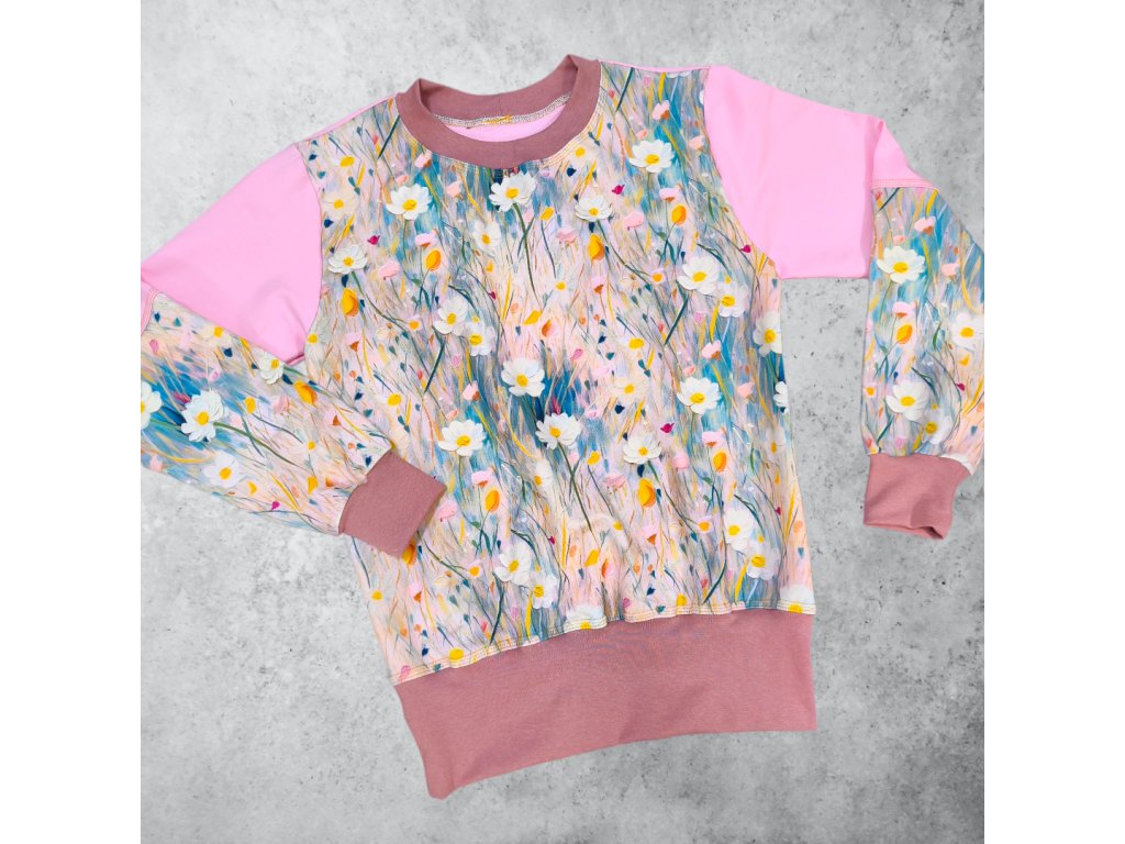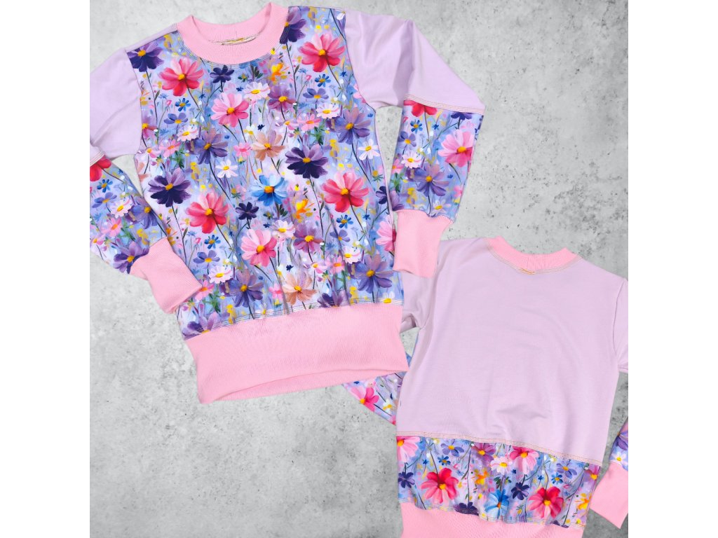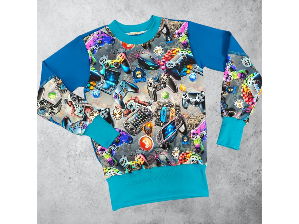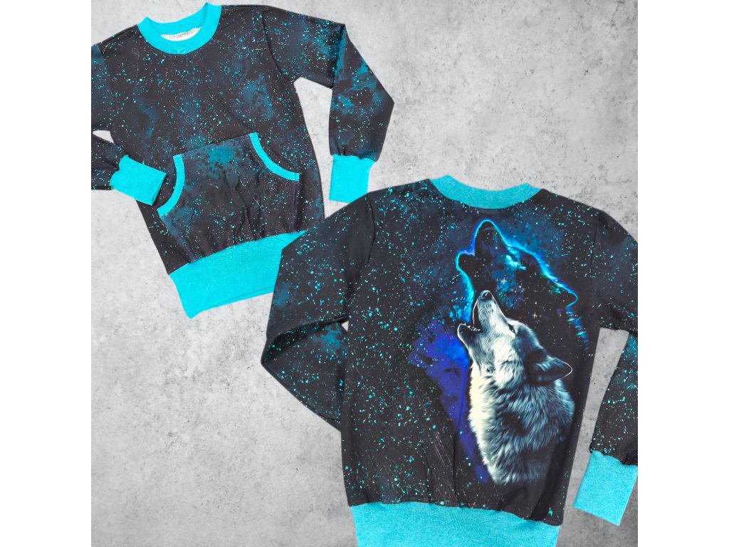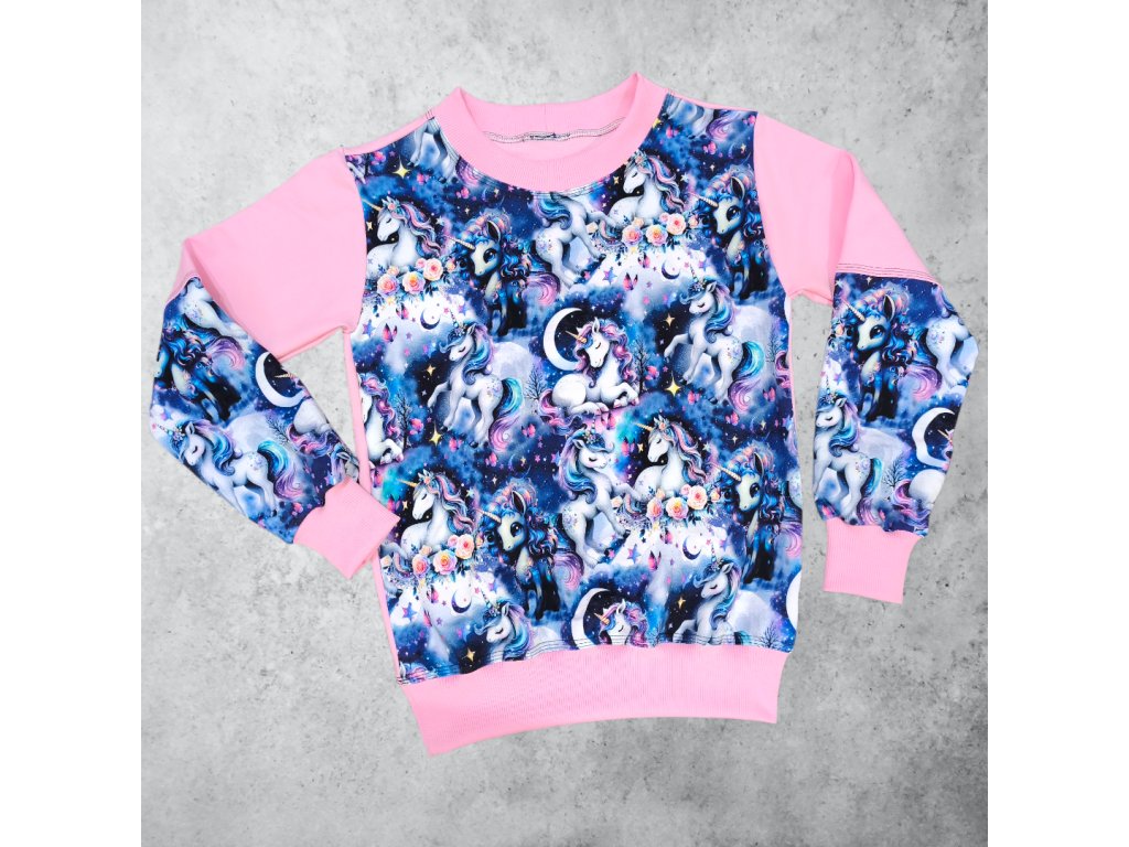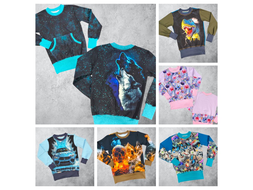 Mikiny jsou ušité z potištěné i jednobarevné teplakoviny z rubu jemná smyčka, čili slabá teplakovina. Mikina je přes hlavu, bez kapuce. Rukávy i spodní část zakončeny pružným nápletem, rostoucí.