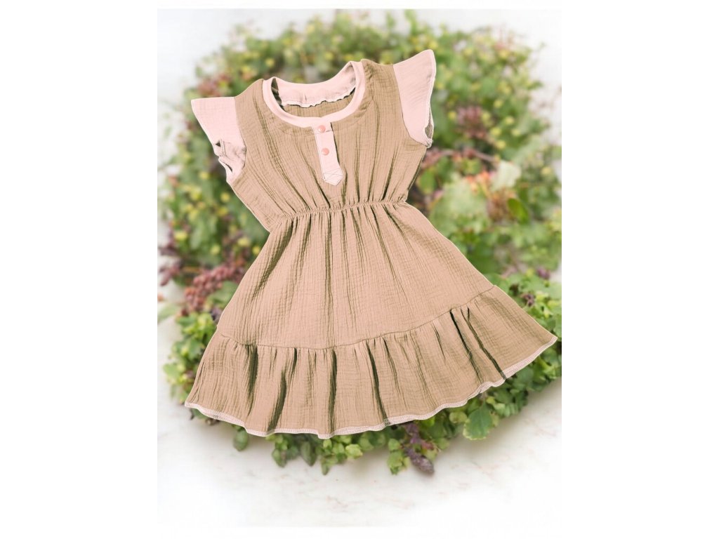 Mušelínové šaty béžové s růžovou 110/116 Dětské šaty