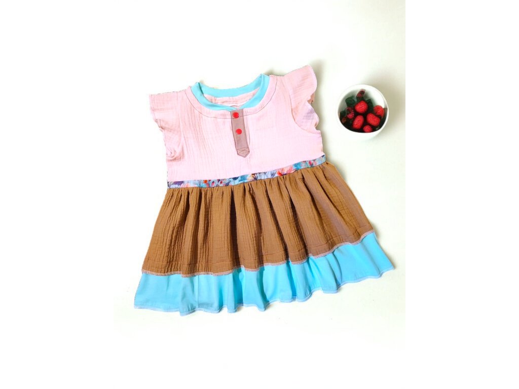 Mušelínové šaty růžové a béžové 86/92 Dětské šaty