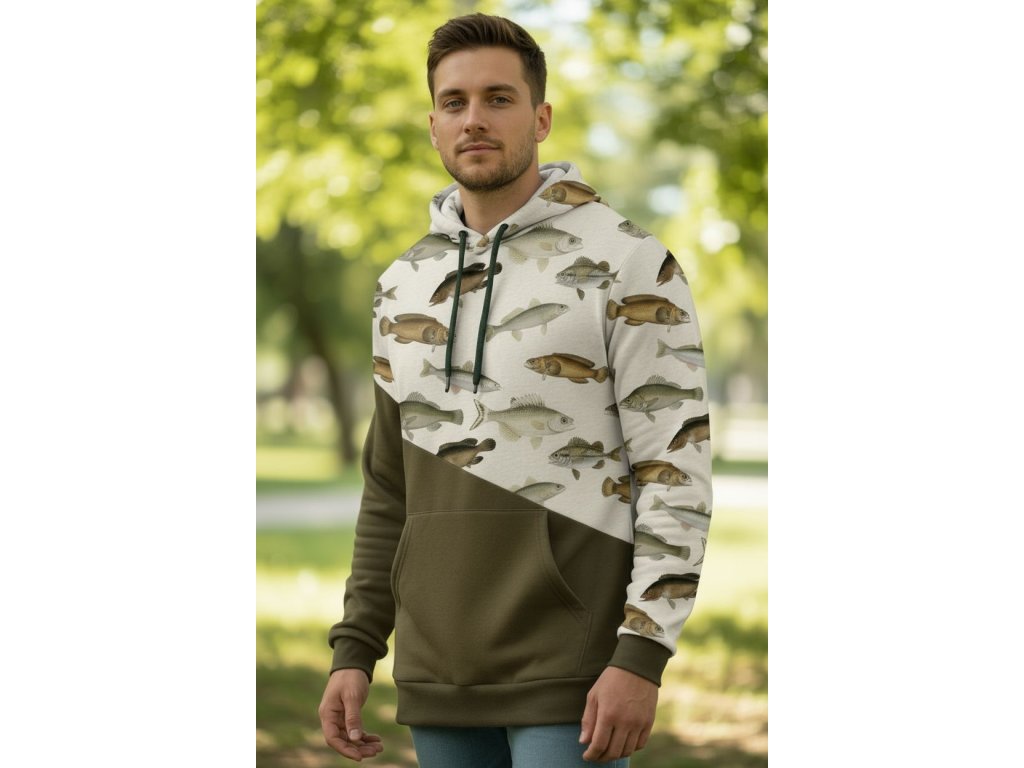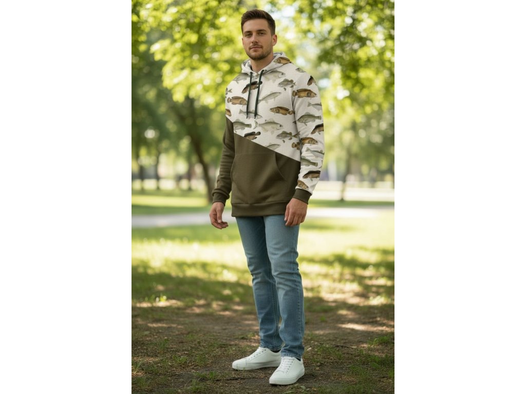 Mikina je ušitá z potištěné i jednobarevné teplakoviny z rubu jemná smyčka. S kapucí, dvě boční kapsy. Rukávy i spodní část zakončeny pružným nápletem.