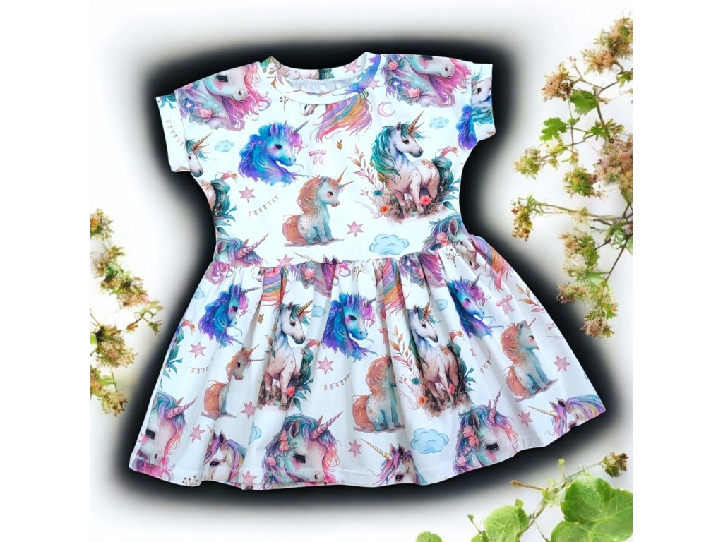 Šatičky jednorožci na bílé 86/92 Dívčí šaty
