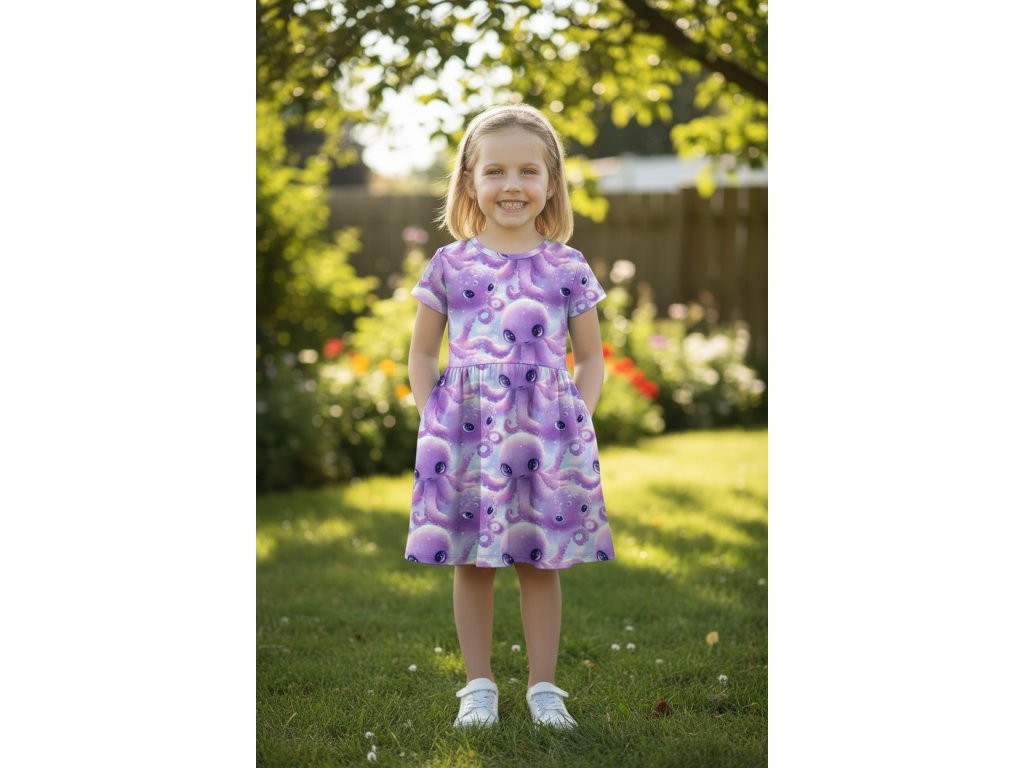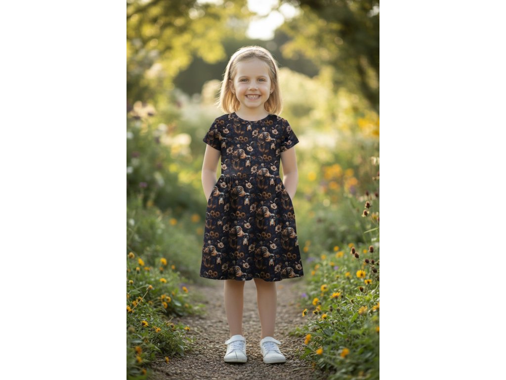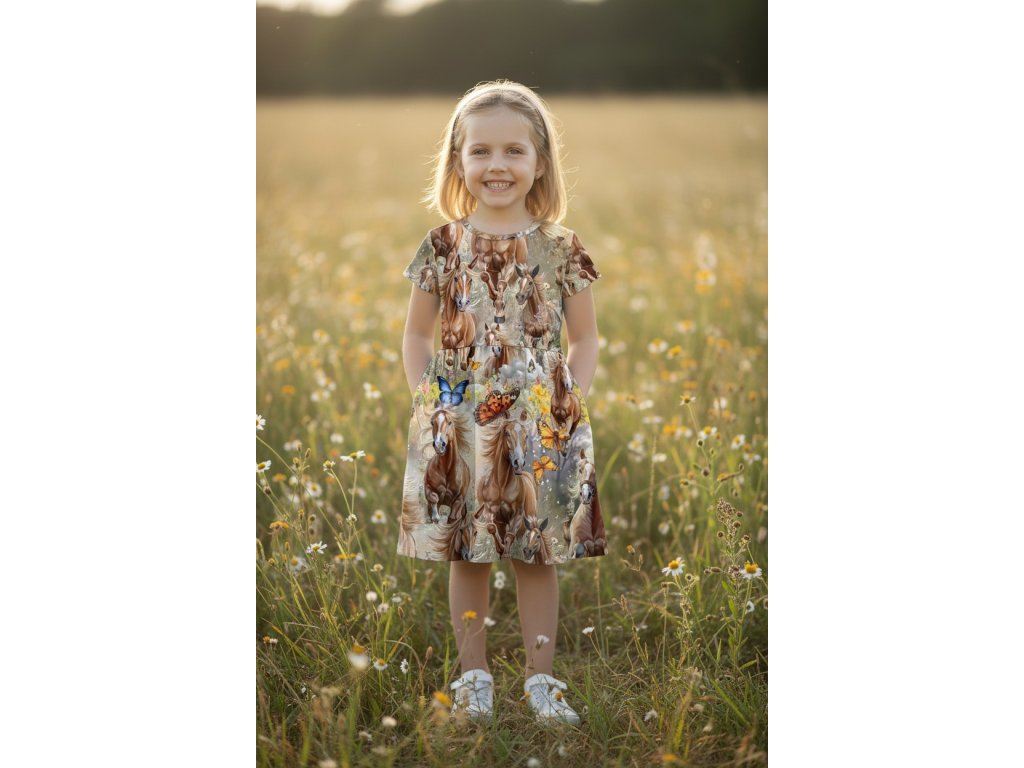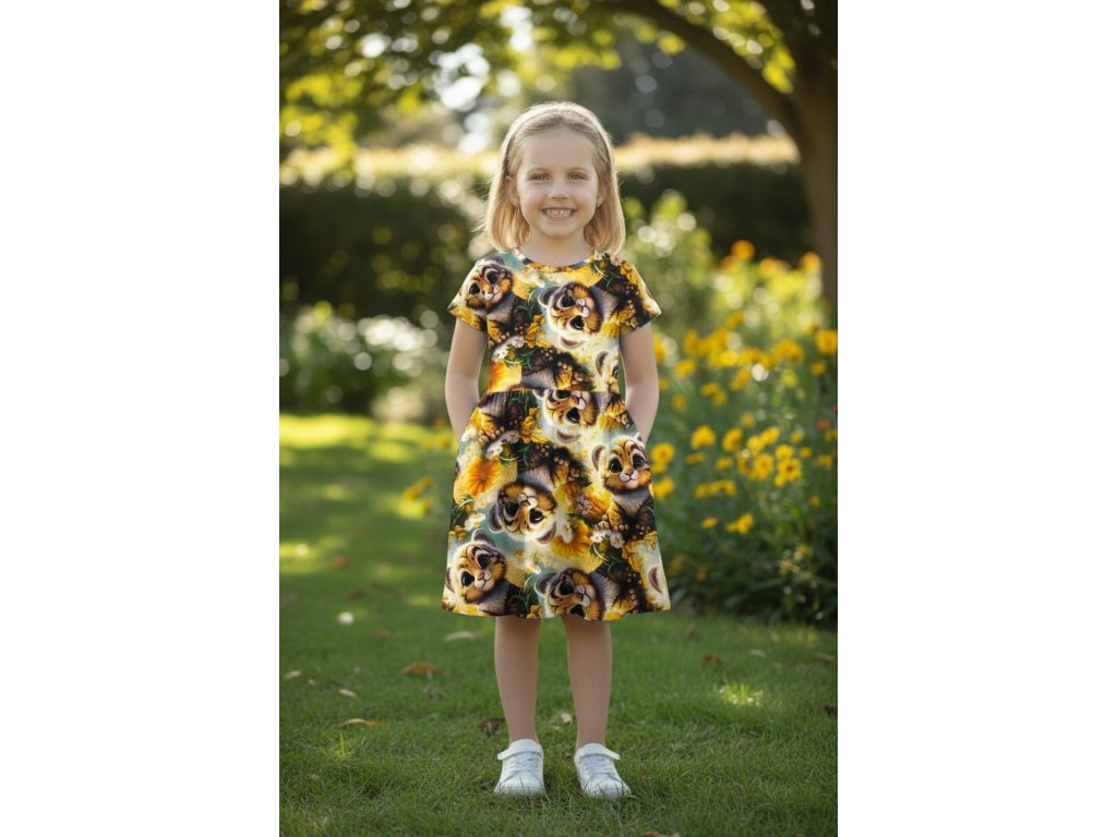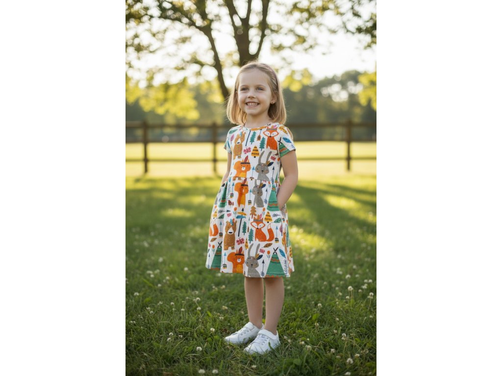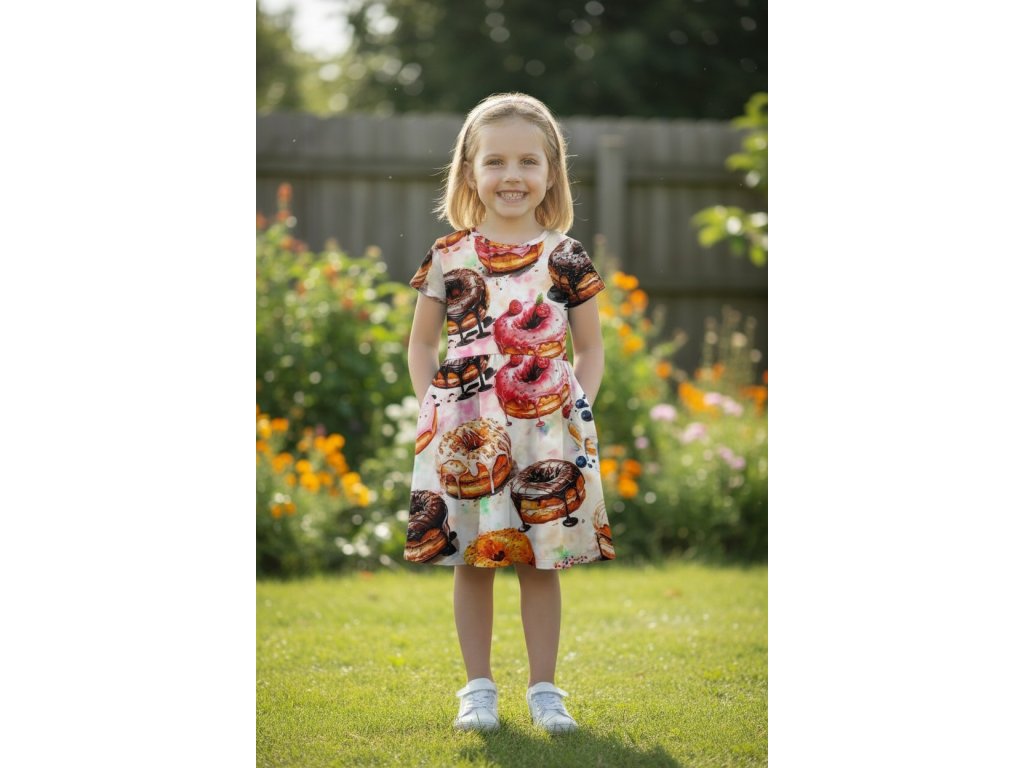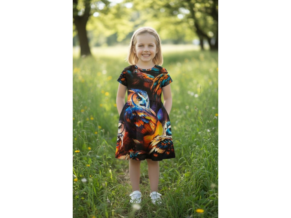 Šatičky jsou šité z potištěného úpletu, s krátkým rukávem, bez rukávu, s volánkovým rukávem. Kulatý výstřih, řasená sukýnka. Různé motivy a velikosti.