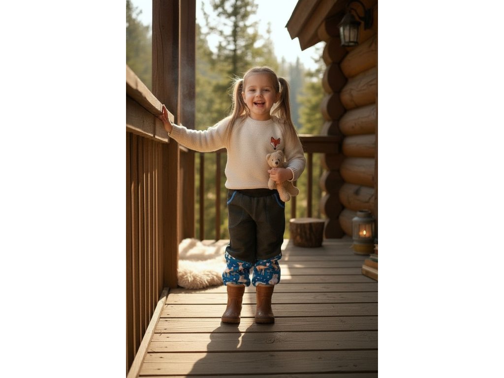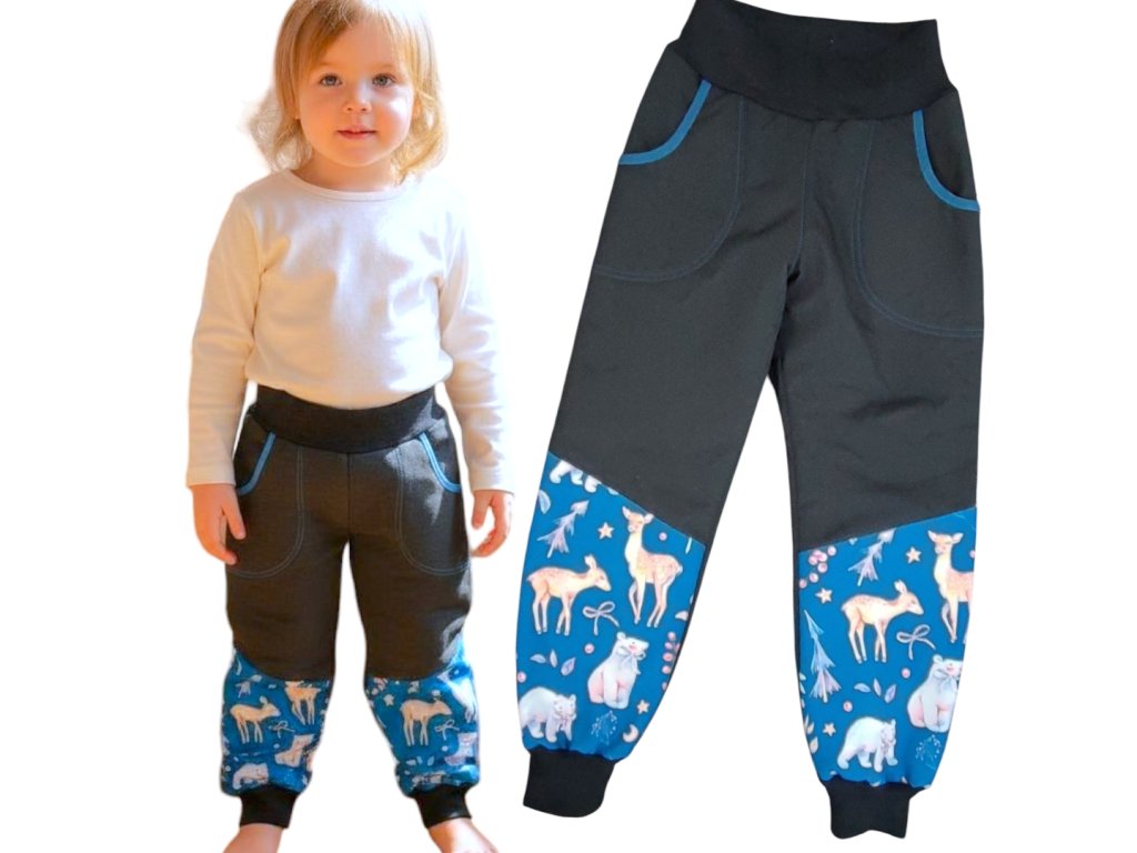 Softshell kalhoty beránek 110/116 lesní zvířátka Holčičí kalhoty