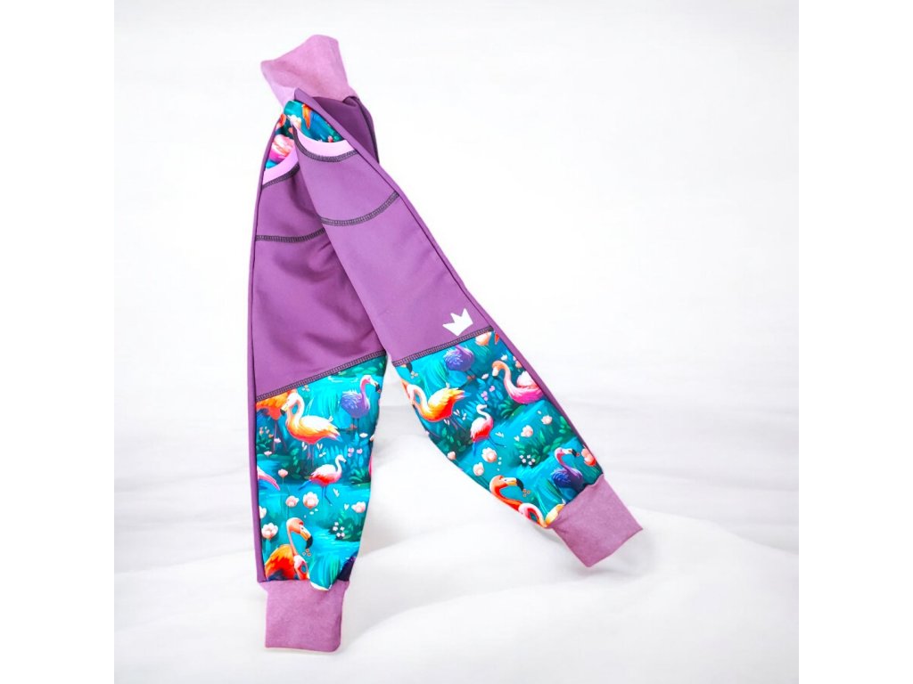 Softshell kalhoty plameňáci ostružina 98/104 Holčičí kalhoty