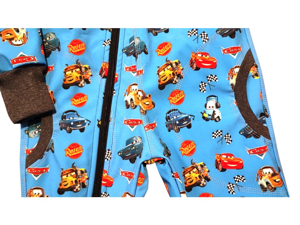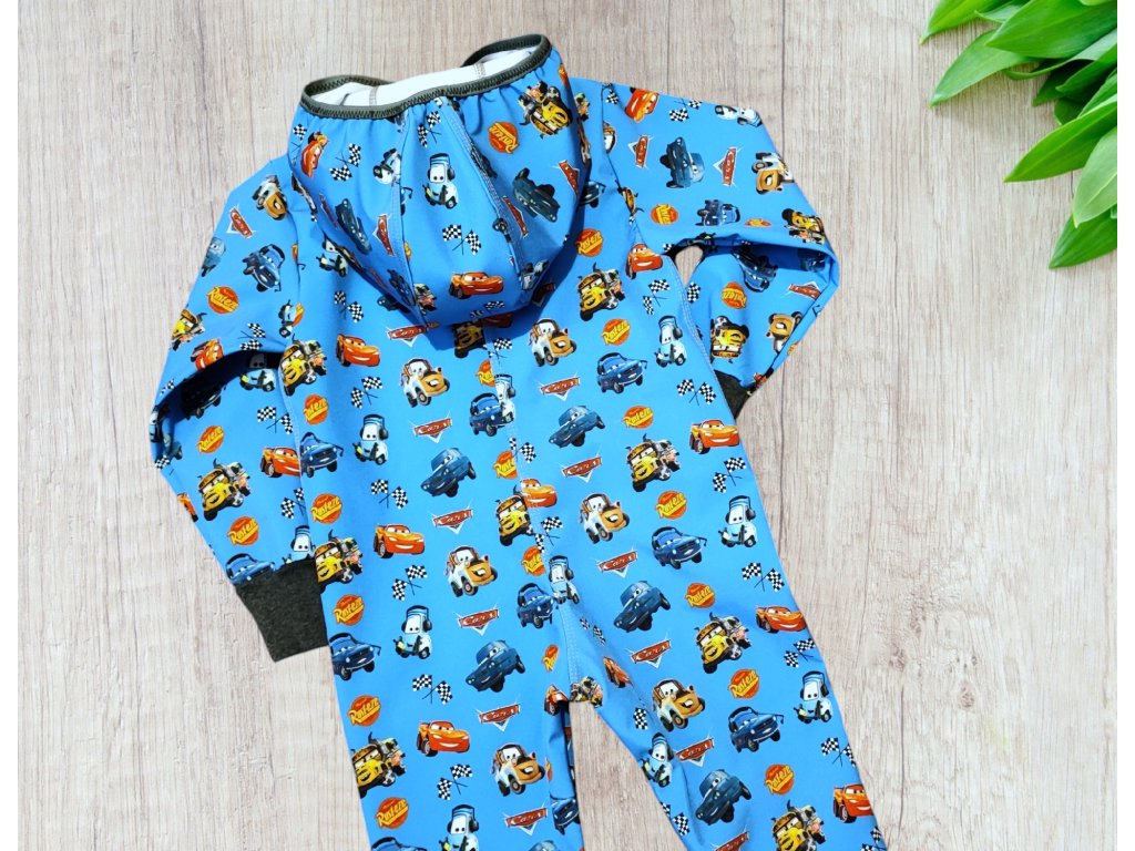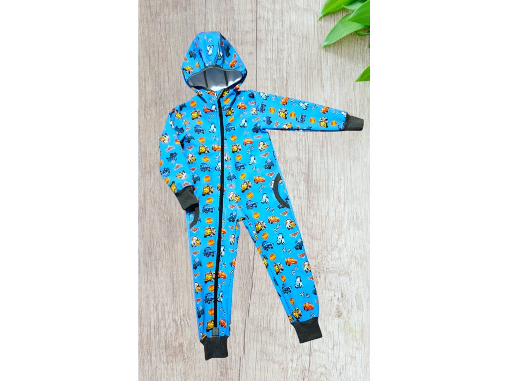 Overal je ušitý z potištěného softshellu, který je zimní s flísem. Na zip až do nohavice, kapsy, kapuce, kryt zipu, rukávy a nohavice jsou zakončeny pružným nápletem.