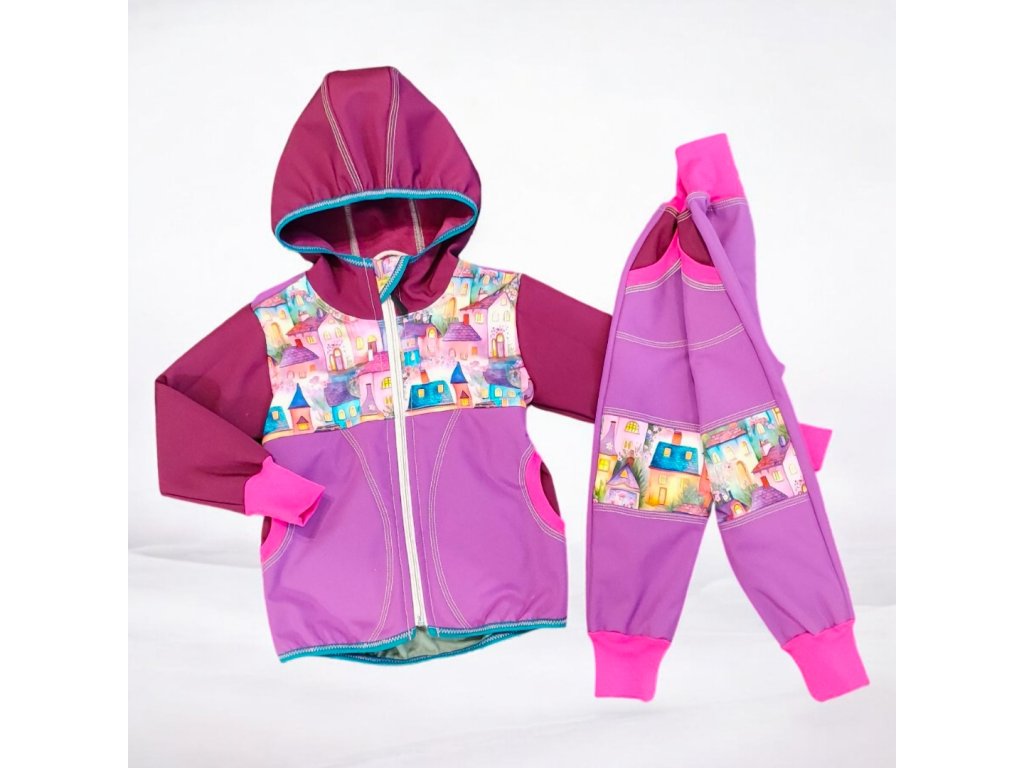 Souprava je šitá z potištěného i jednobarevného softshellu, který má z rubu jemný flís. Souprava je funkční, odolná vůči vodě a větru. Zároveň ale prodyšná.
