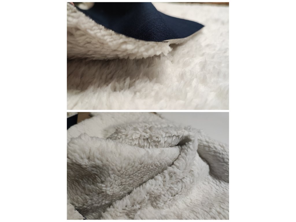 Souprava je ušitá z jednobarevného i potištěného softshellu, který má z rubu hřejivého beránka. Je funkční, odolná vůči vodě a větru a zároveň prodyšná. Bunda je na zip s krytem, dvě boční kapsy, kapuce, zadní díl je mírně prodloužený, reflexní prvky součástí. Kalhoty jsou klasické, dvě kapsy, v pase do vyššího pružného nápletu s otvorem pro případné navlečení gumy, nohavice též zakončené pružným nápletem (rostoucí).