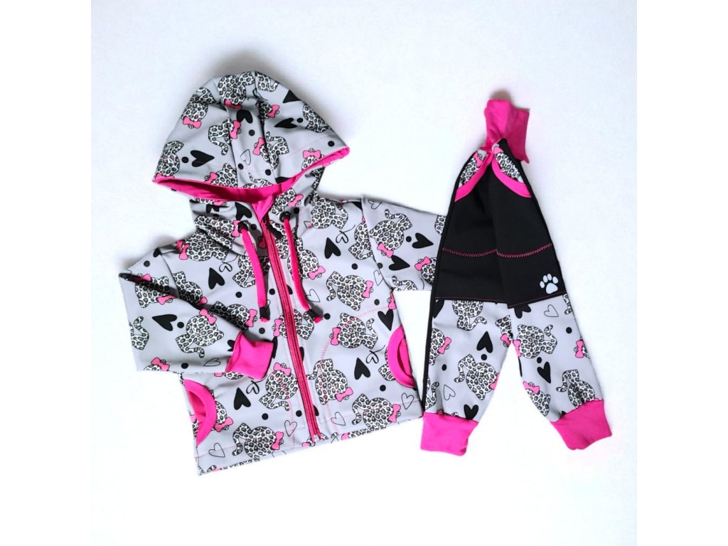 Softshell souprava leopardí kočičky 74/80 Holčičí souprava