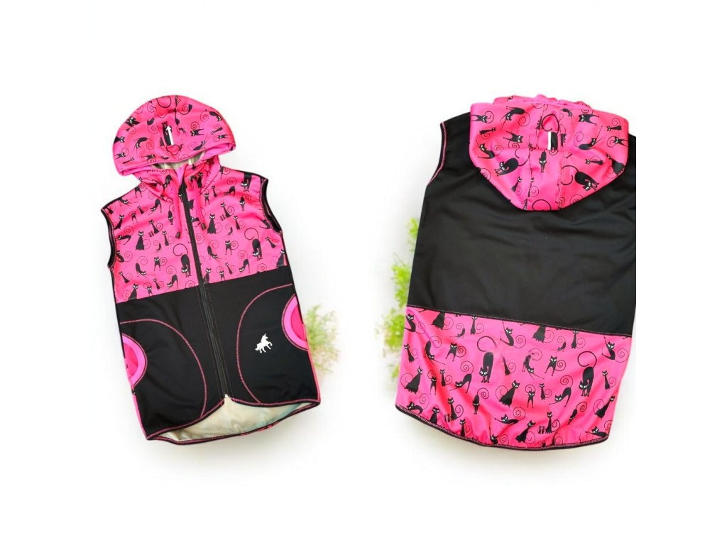 Softshell vesta kočičky na růžové 134/140 Holčičí vesta