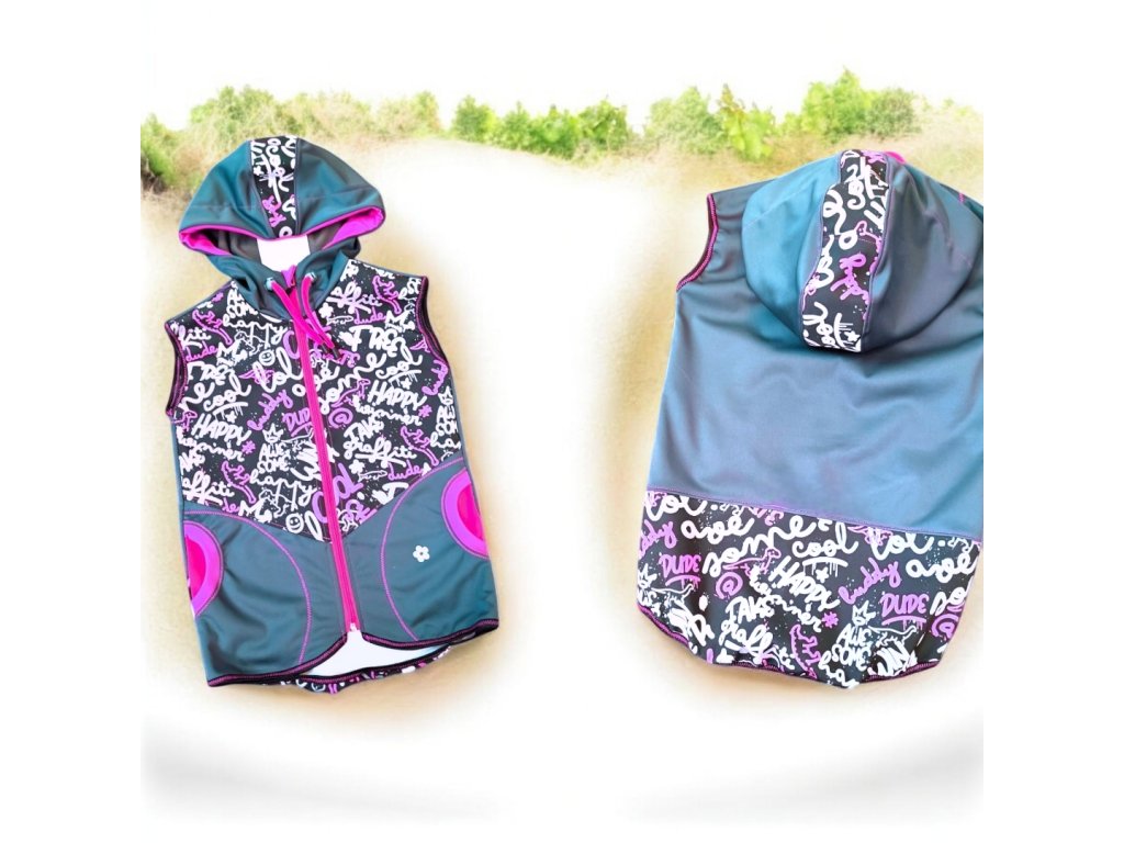 Softshell vesta růžové nápisy 110/116 Holčičí vesta