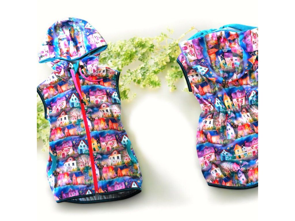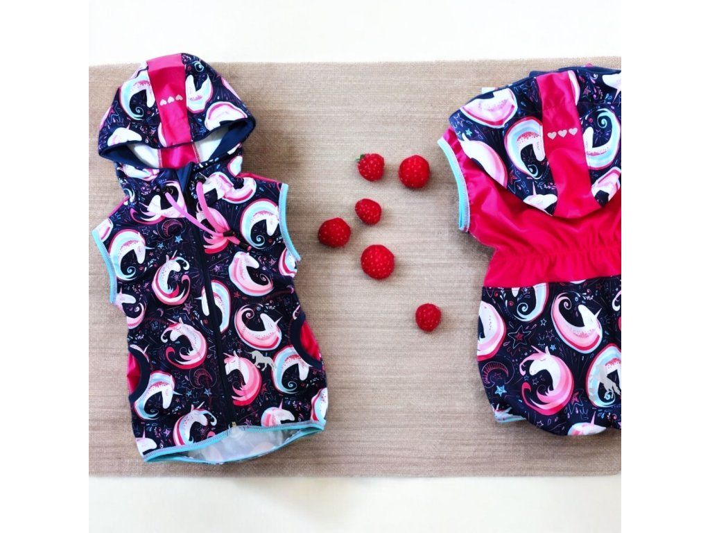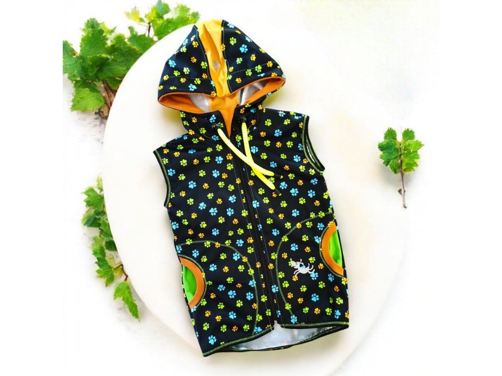 Vesta je ušitá z potištěného i jednobarevného letního softshellu. Vhodné pro kluky i holky na jaro, léto i podzim.