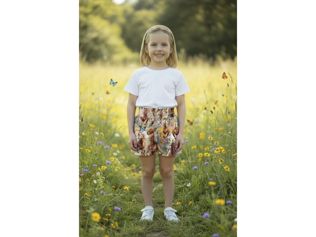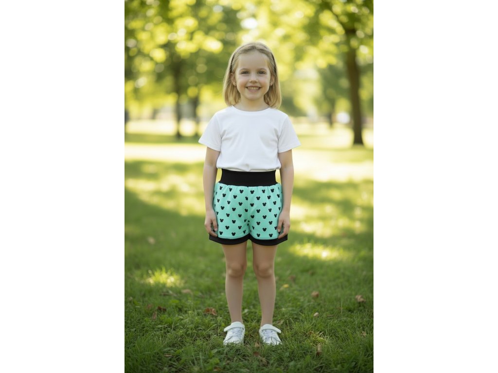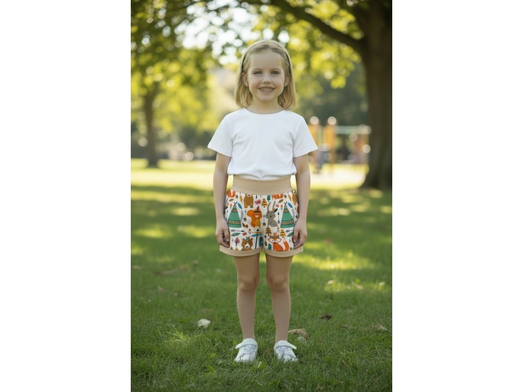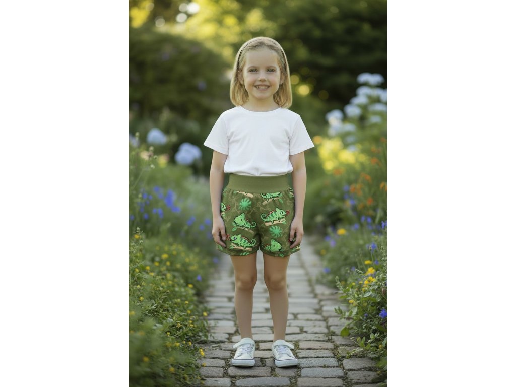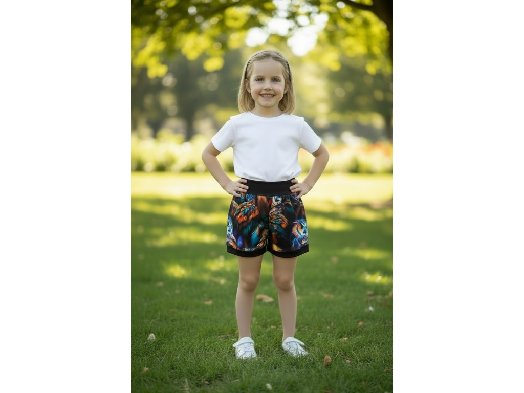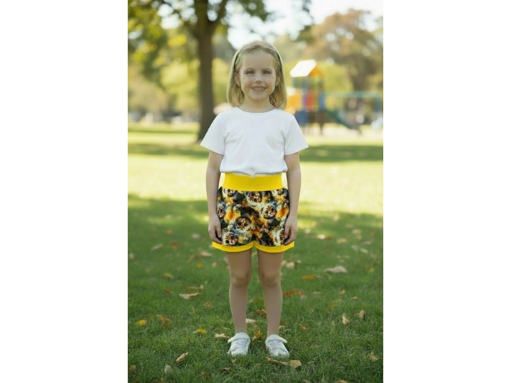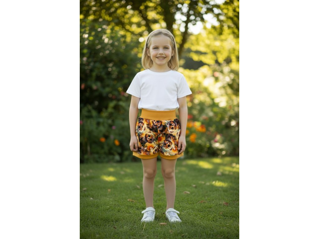 Šortky jsou ušité z potištěného úpletu. V pase do vyššího pružného nápletu s otvorem pro případné navlečení gumy. Výběr ze dvou střihů, balónový a klasický rovný. Vhodné pro kluky i holky, v různých velikostech a motivech.