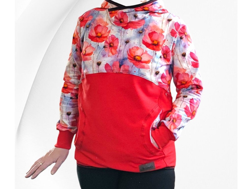 Mikina: délka 61cm, šířka v podpaží 2x48cm, rukáv od konce ramene 52cm