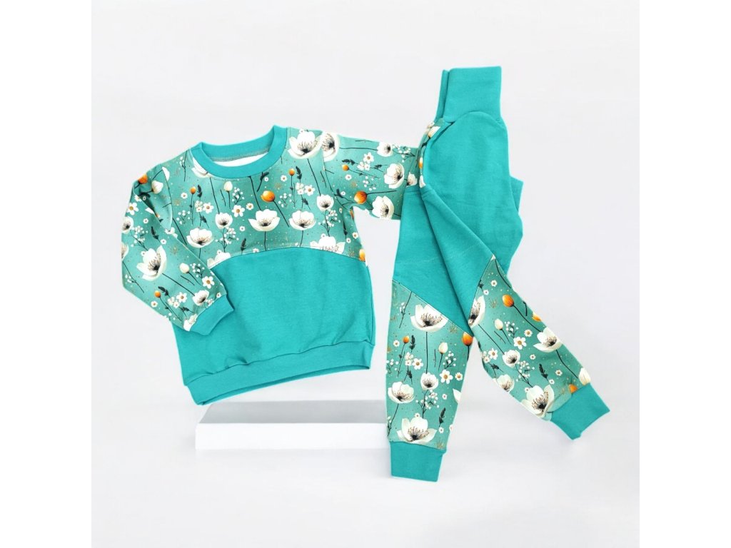 Teplákovka bílé květy na mintu 80/86 Holčičí souprava