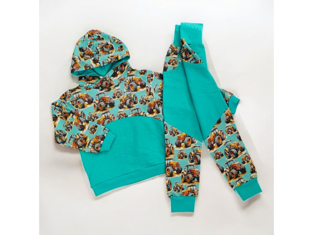 Teplákovka traktory Mint tmavší 92/98 Klučičí souprava