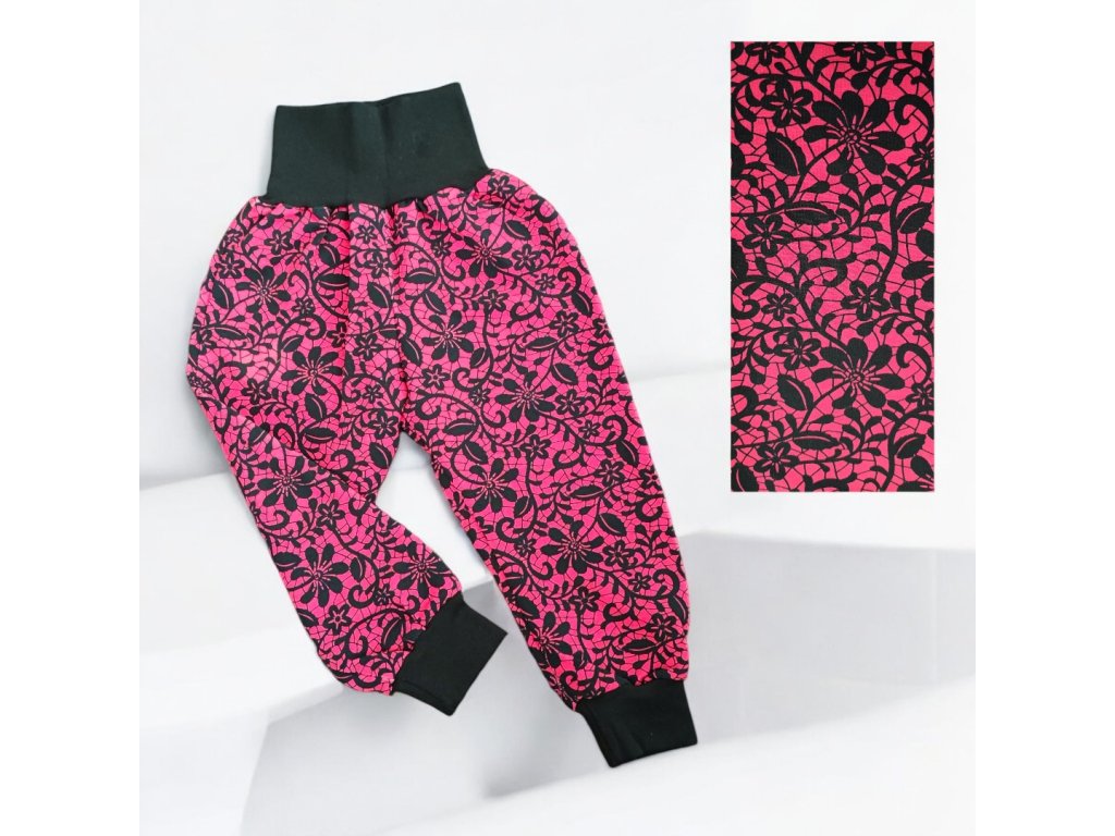 Tepláky 74/80 černá krajka na růžové Holčičí tepláky