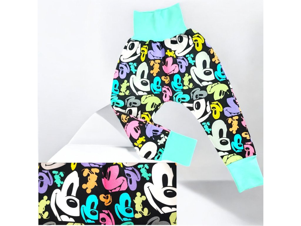 Tepláky baggy 74/80 barevné myší hlavy Dětské tepláky