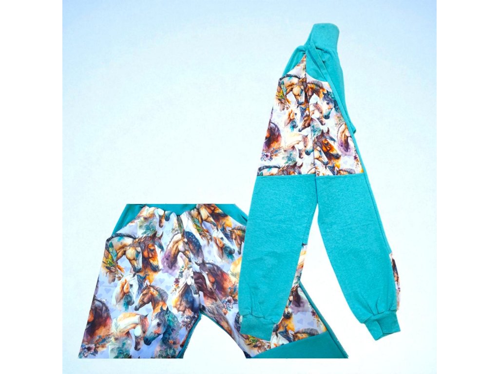 Tepláky s koníky a srdičky 134/140 Holčičí tepláky