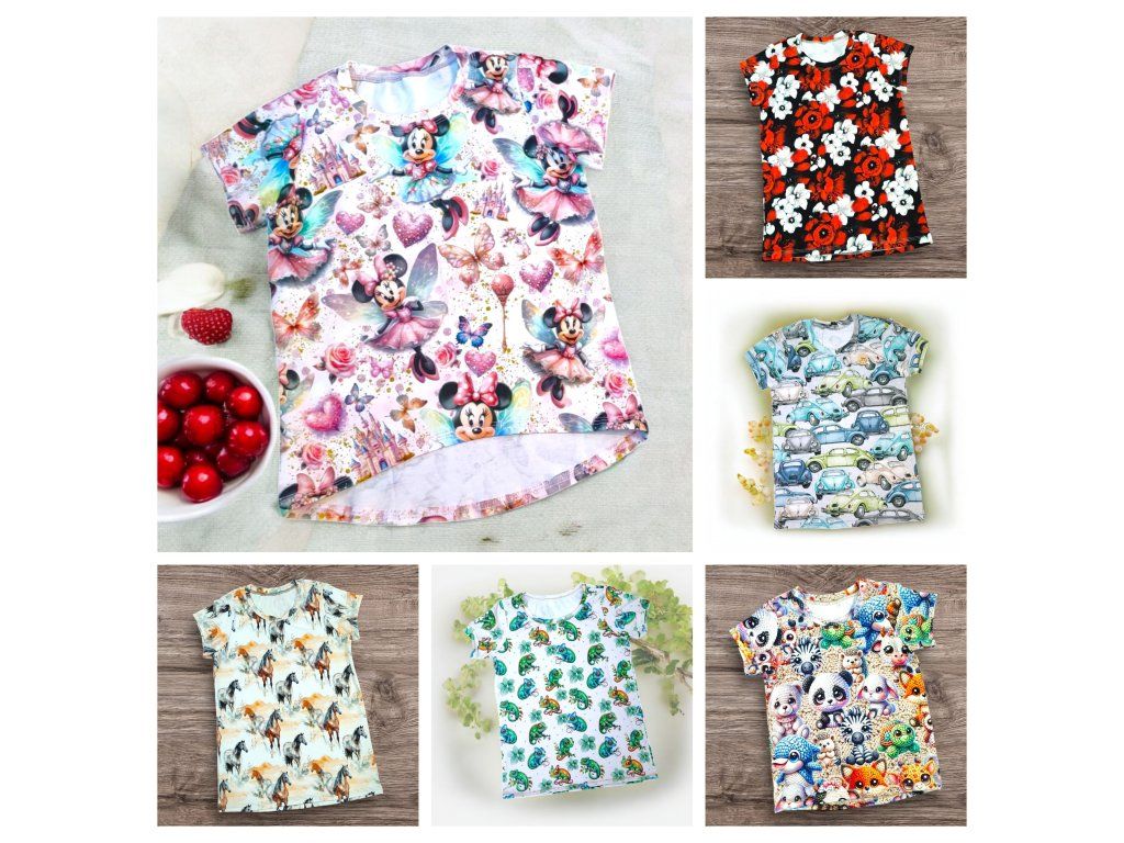 Trička jsou ušitá z potištěného i jednobarevného úpletu.