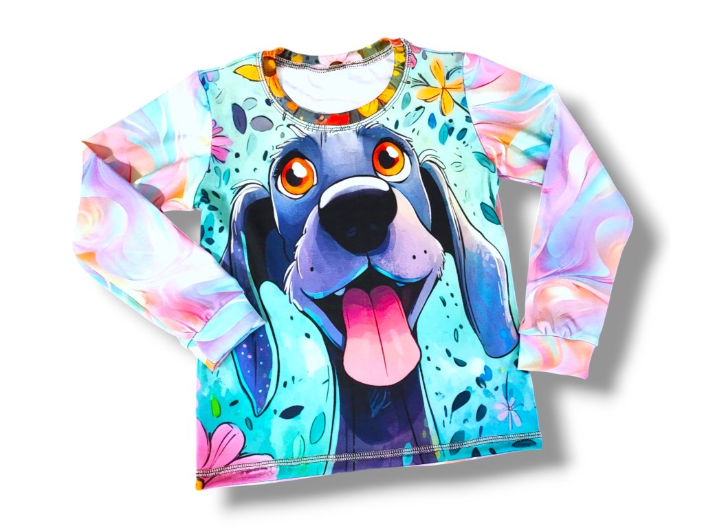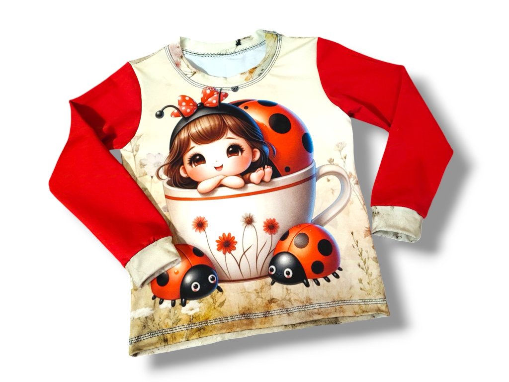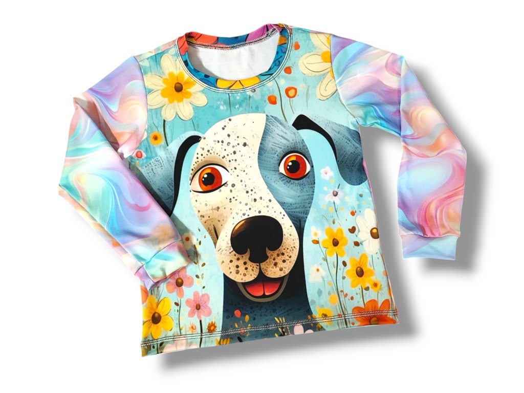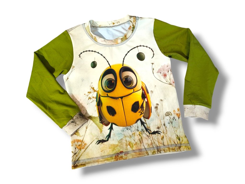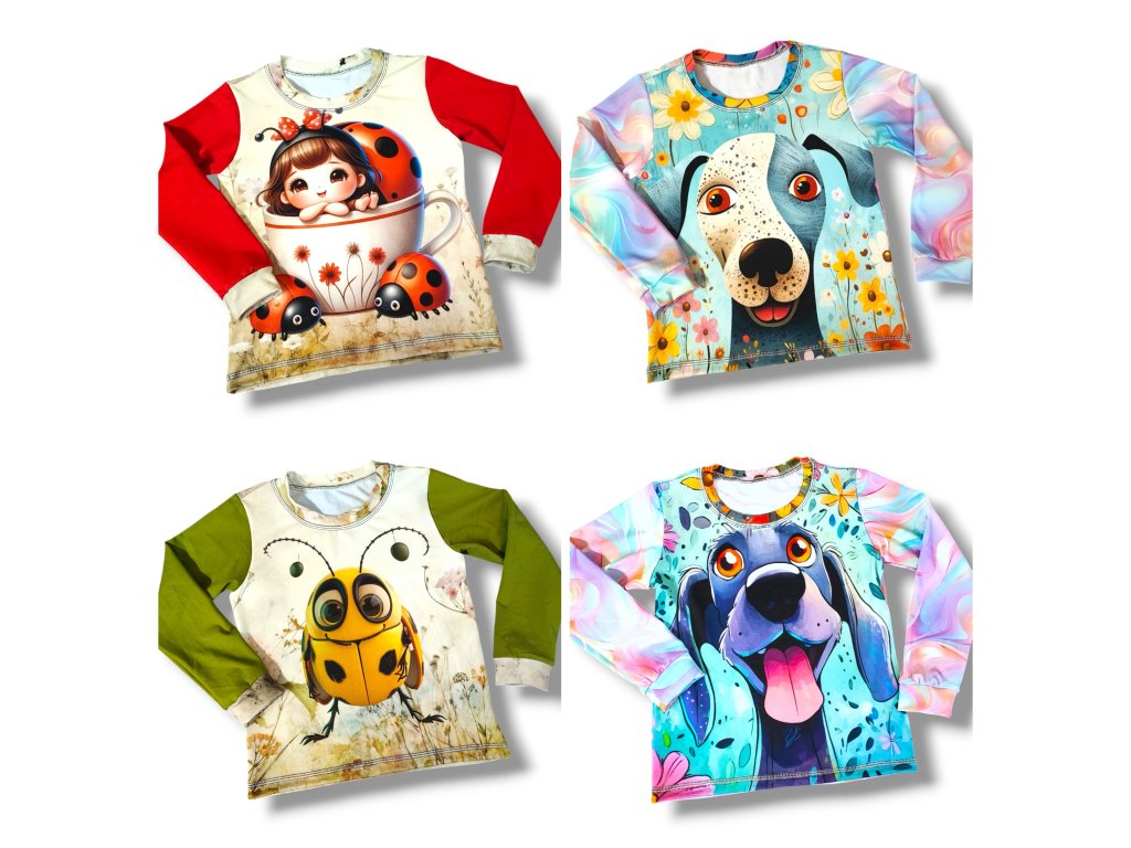 Tričko je šité z potištěného úpletu s obrázkovým panelem. Je s dlouhým rukávem, kulatý výstřih.