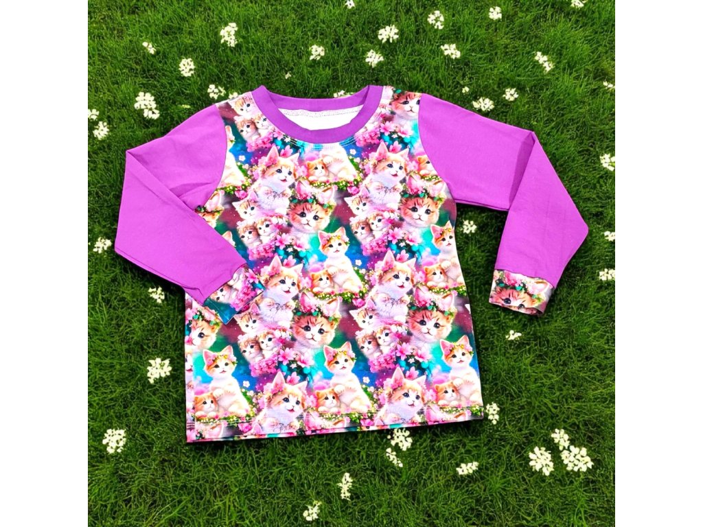 Tričko je šité z potištěného i jednobarevného úpletu. S dlouhým rukávem, kulatý výstřih.