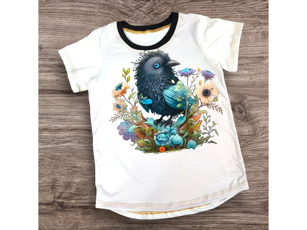 Triko funkční ptáček mezi květy 110/116 Dětské tričko